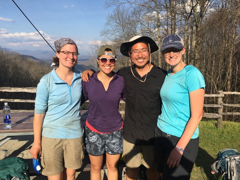 Good people and great view… Can’t ask for a better night. Left is Dani, we recently gave her the trail name MS. Pots because she cooks with a pot which no one else does. Then Scout, and Spills.