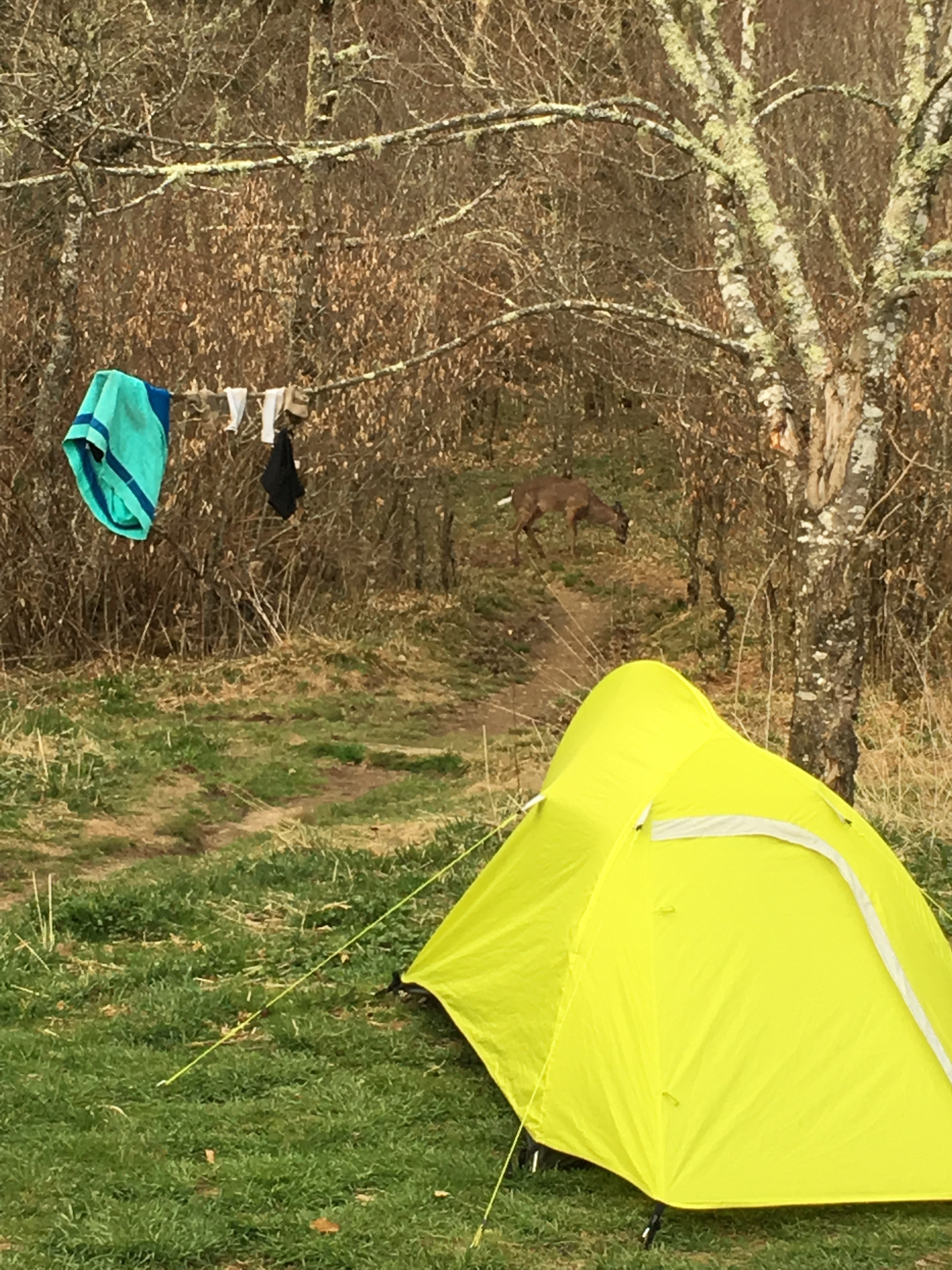 At camp last night I was making my way to the privy and there was a deer just standing there. I came closer and closer and it didn’t get scared at all. Looked at me.. Looked away, walked a little bit and then once I passed it went back. Crazy!!