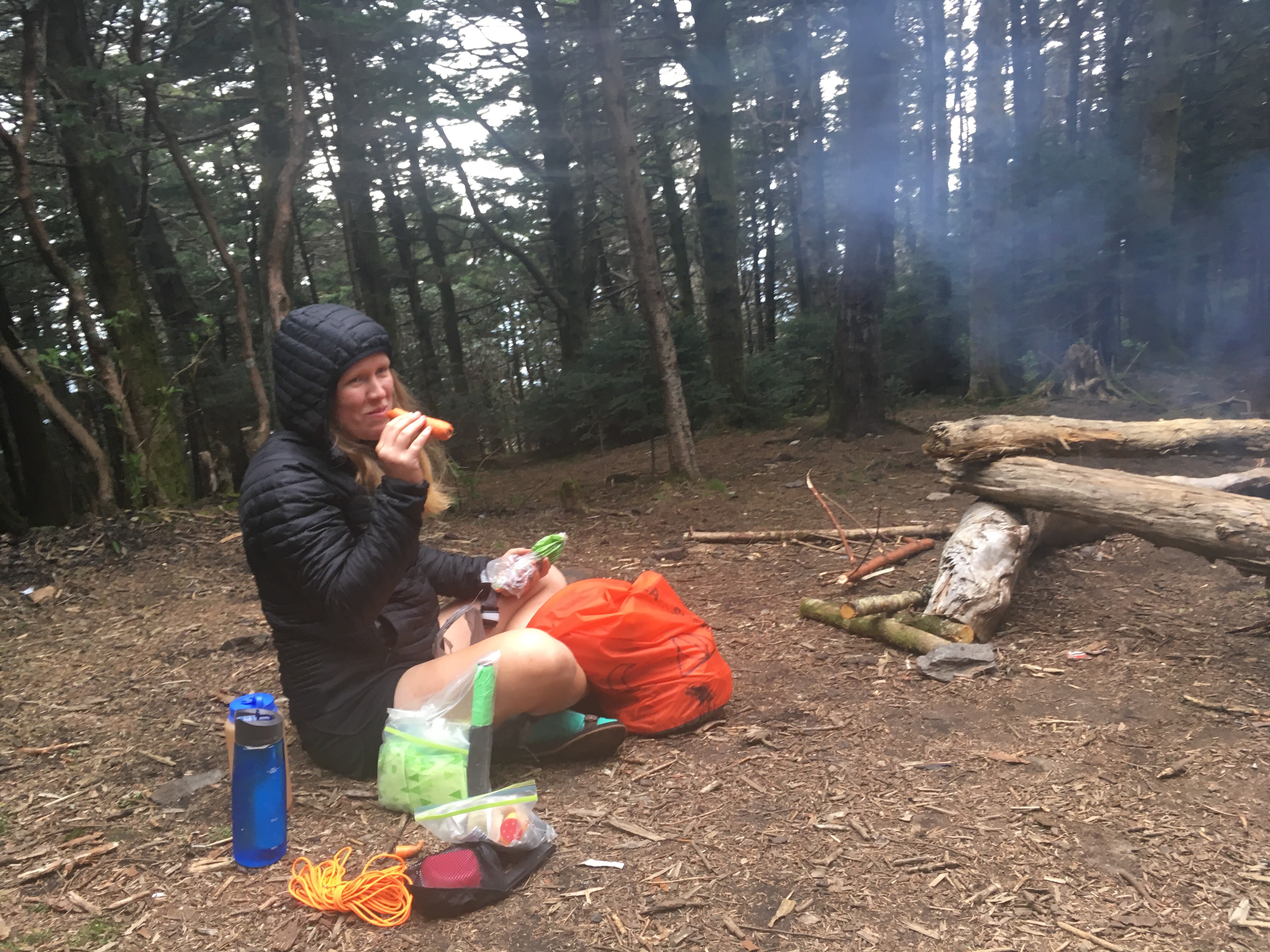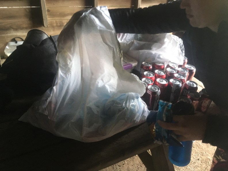 A lady came during the afternoon and brought us trail magic!!! Aka two trash bags full of chips and junk food and cans of pop. It made the rainy cold day a little more bearable.