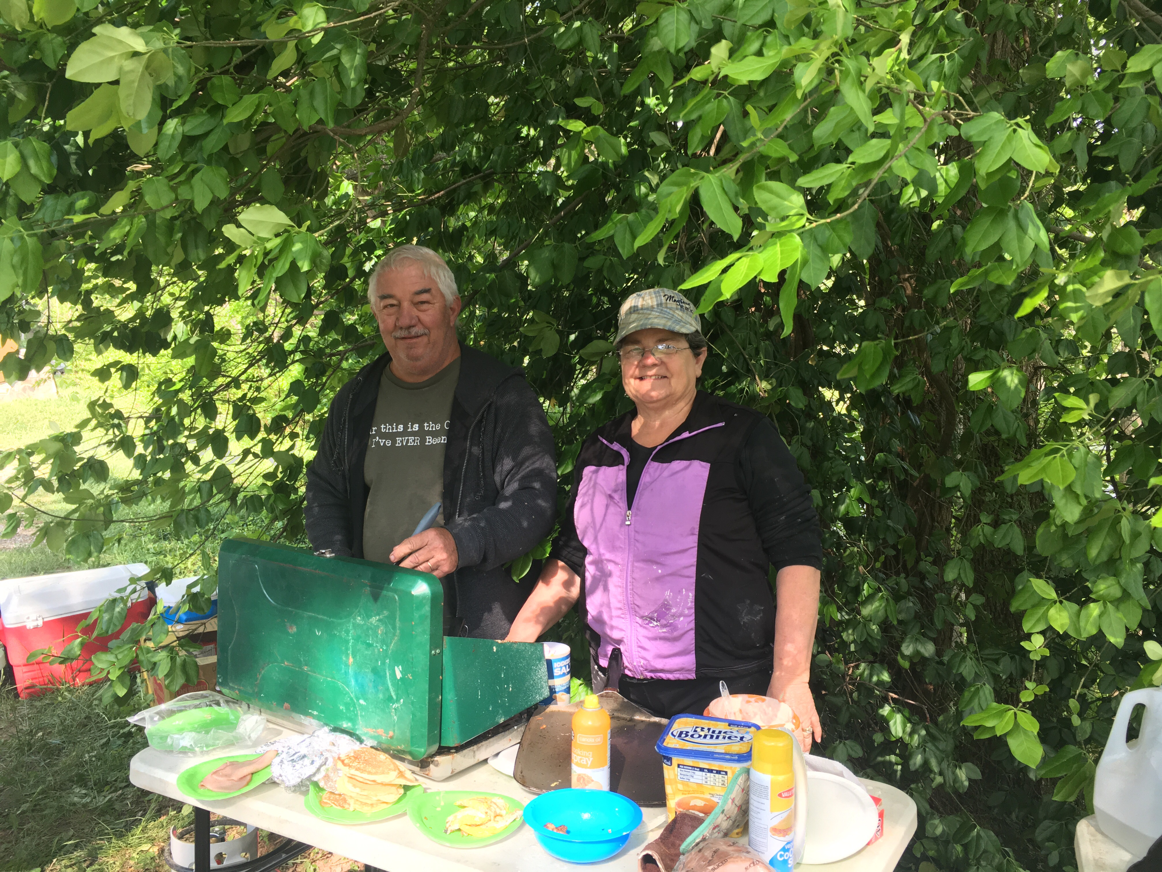 They were making breakfast!!!!!!!! Pancake and eggs and juices AND to go bags that we could make of junk food. I mean common…. It was so legit and helped get me pumped for the day.