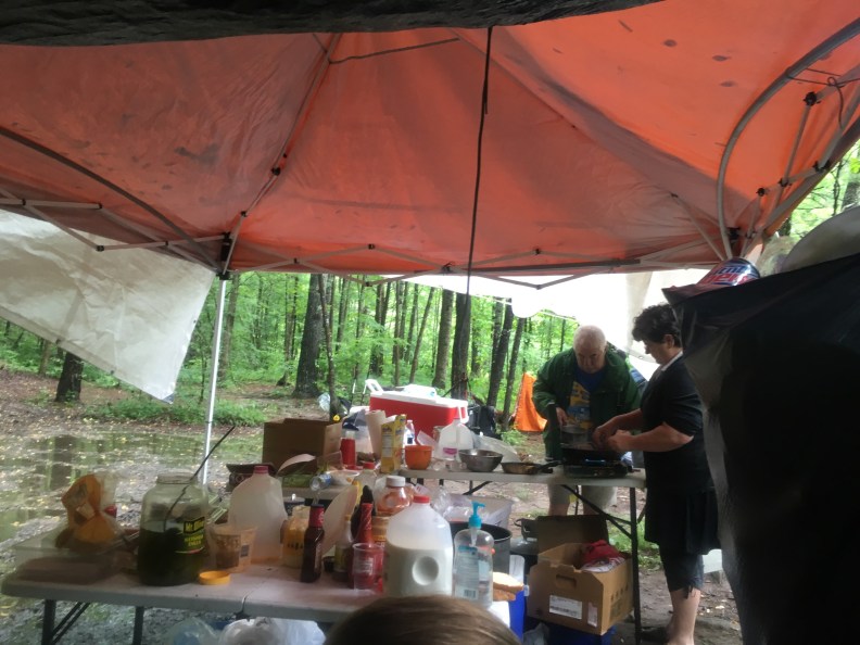 I almost cried with excitement. Then I turned and ran a few feet. I could not wait! So we quickened our pace and when we approached the tents…we recognized it was Old Goat and Granny!!!! That did amazing trail magic at Watugua Lake!!