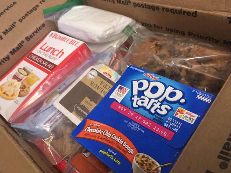 so I could pick up a care package my aunt and grandmother sent and resupply on food. I was so excited to see what I got.