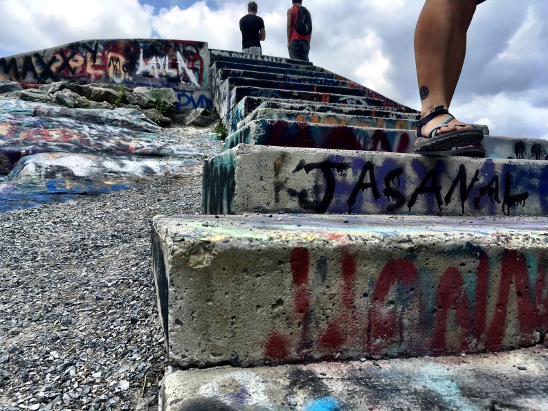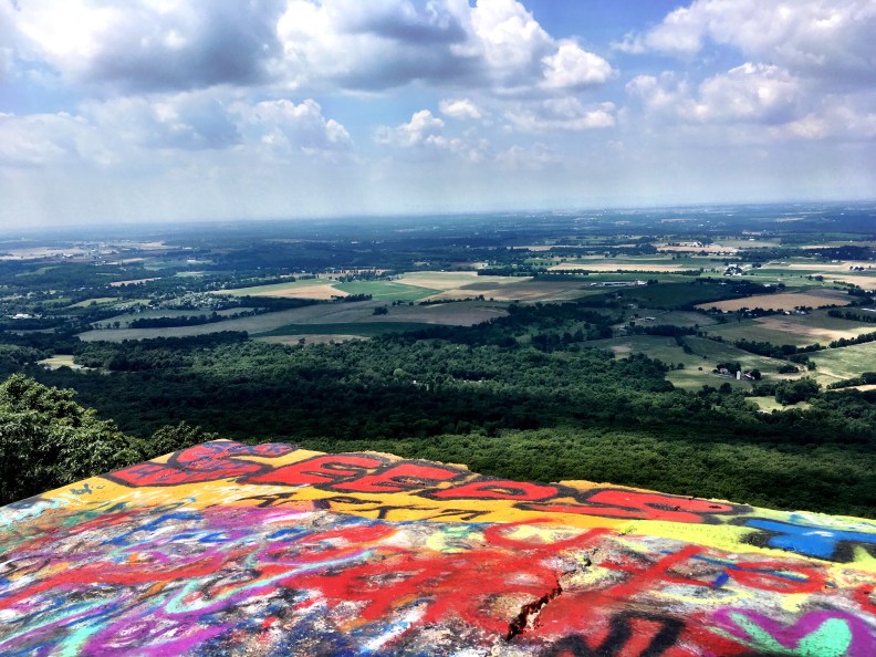 I definitely didn’t dangle my legs here. 1. The paint makes the rocks slippery and 2. A news crew was here filming, talking about how a women fell 50 feet yesterday from the top…