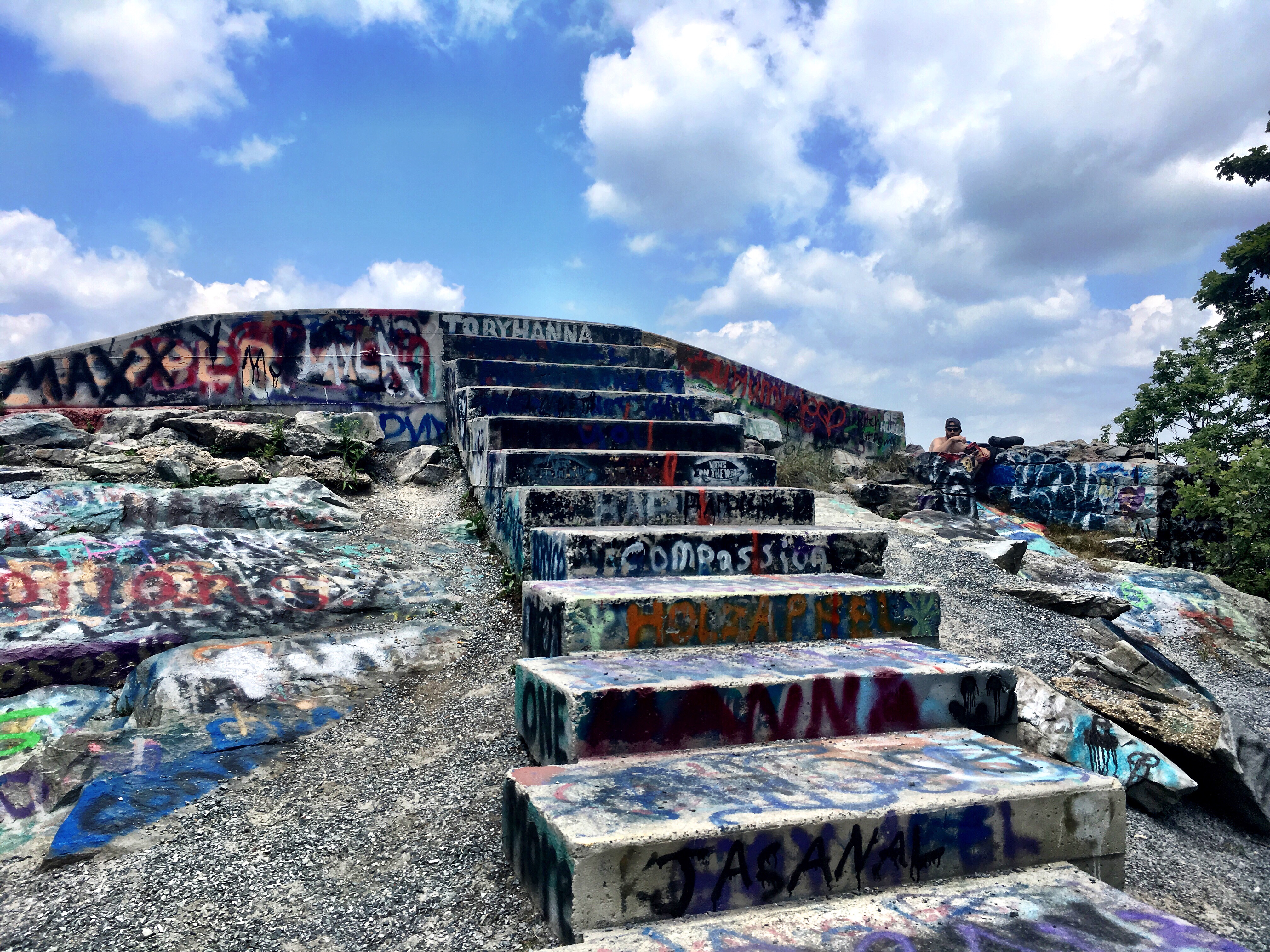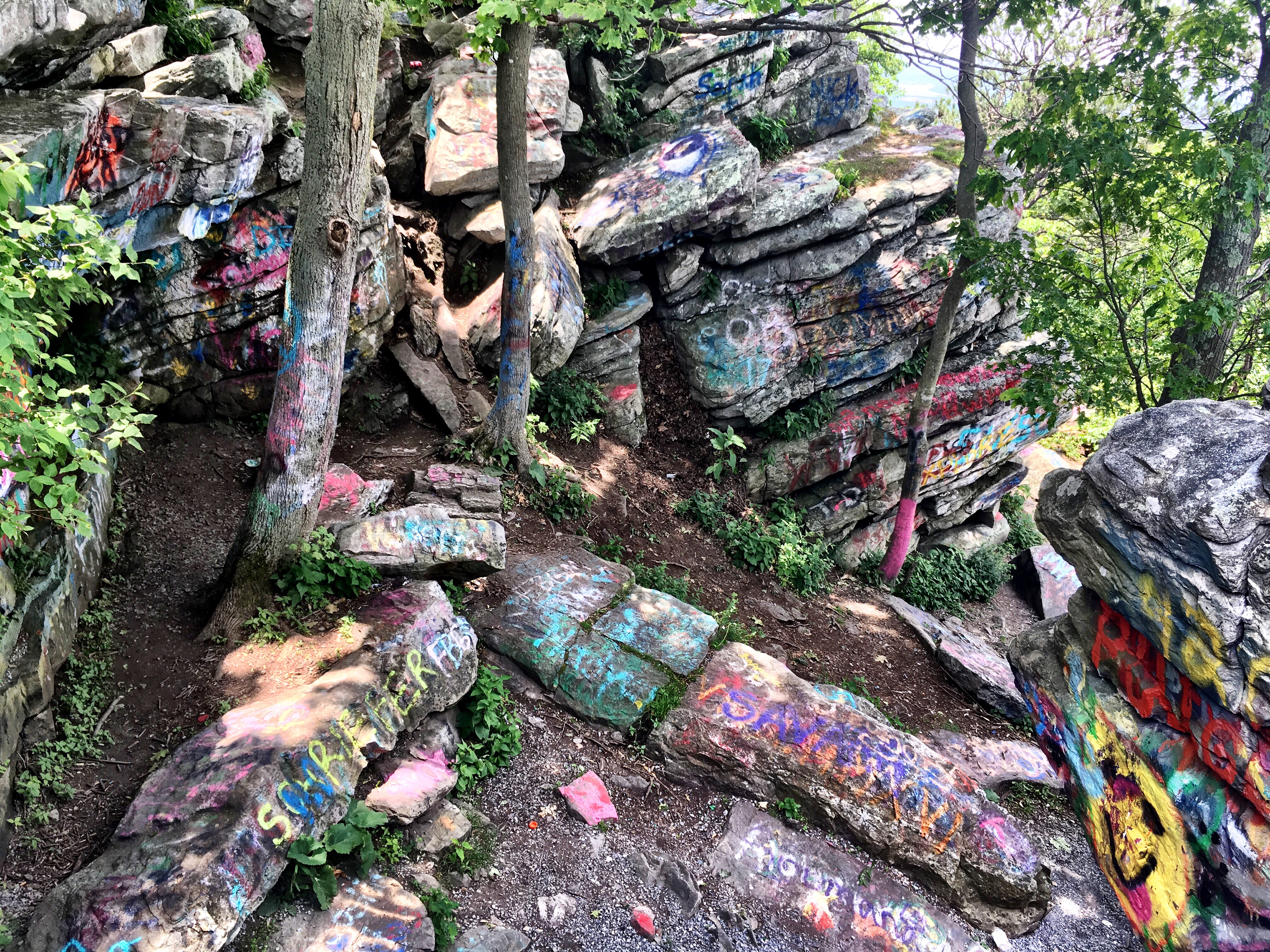 I definitely didn’t dangle my legs here. 1. The paint makes the rocks slippery and 2. A news crew was here filming, talking about how a women fell 50 feet yesterday from the top…