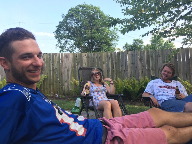 Then we sat outside and chatted for hours and had a delicious dinner. I didnt even get a picture of it because I scarfed it down. Pulled Pork sandwiches, potato salad, cole slaw, fruit salad. Man it was yummy.