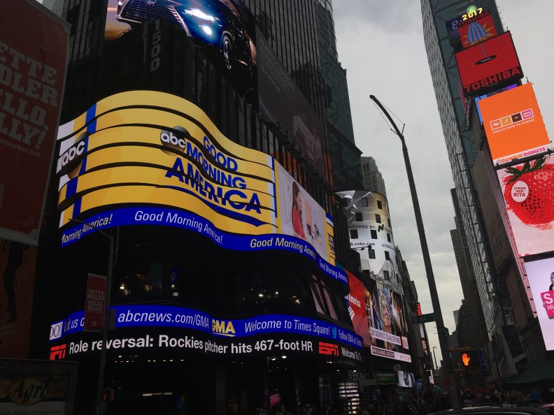 I really wanted to stand where they film good morning America with our packs on. We would for sure been asked what we were doing. But they weren’t filming at the time.😆
