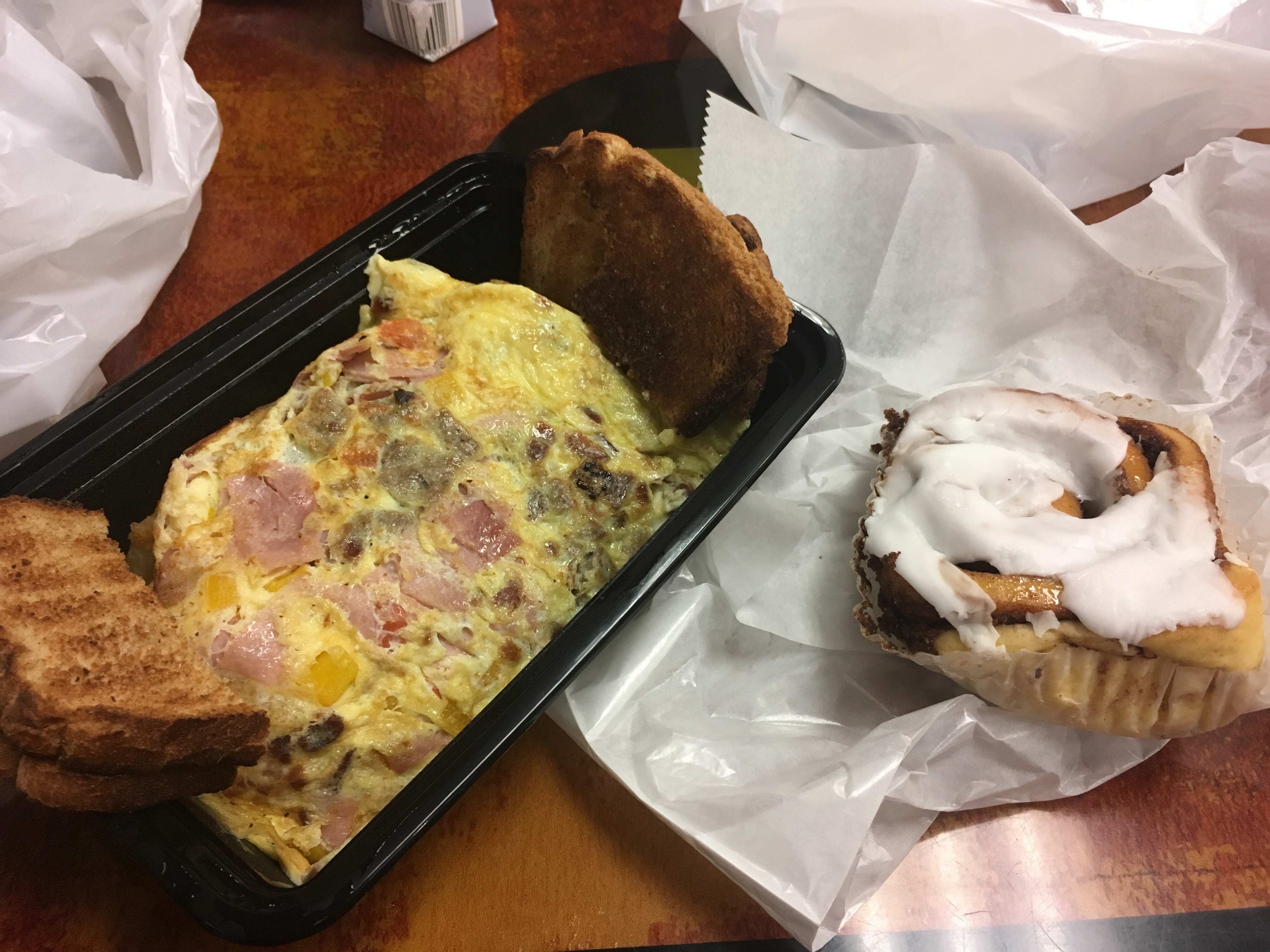 I got an omelette and a cinnamon roll. They were quite delicious.