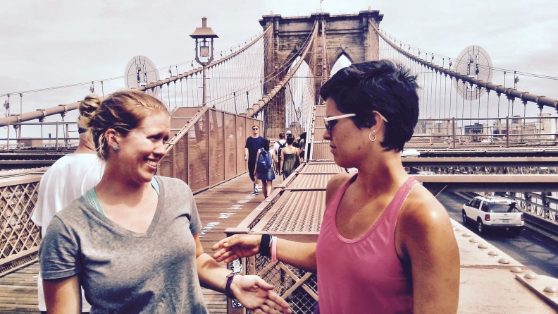 “New York Walk please, let’s go, Ill walk across with you, let’s go”