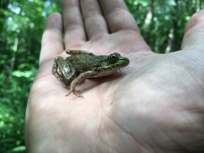 Woodpile likes to catch frogs and put them in his pocket….and scare me.