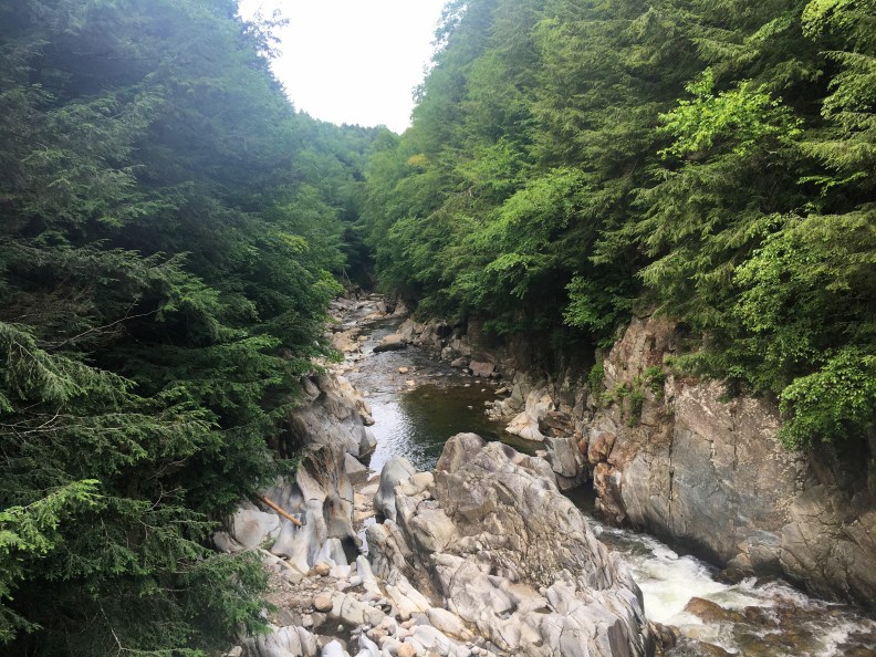 Woodpile and I stood in the middle of the bridge taking pictures of the river running below us. It was quite beautiful and the rocks around it were quite unique.