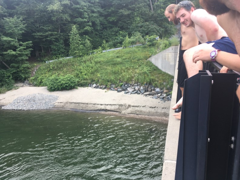 Later we walked back to the bridge and shoo bear, Colby Jack, Alex, and planner jumped off the bridge.