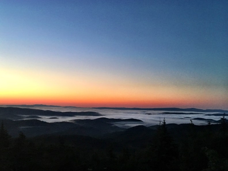 Next thing I know, I jump up and snap my foot back as I feel something grabbing it. Being in a semi sleep zone, it startled me greatly. I look down and see Woodpile quietly laughing to not wake Alex and Planner and he whispers “There is an awesome sunrise you have to see, I don’t want you to miss it”