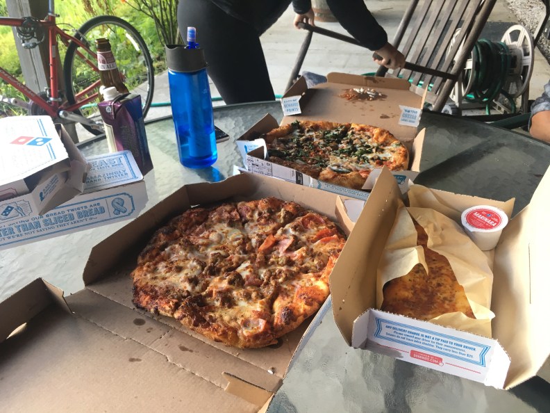 So we hung around, ordered pizza; two mediums, two boxes of cheesey bread sticks, and order of brownies and us four ate it all within 15 minutes in addition to ice cream Warren’s wife brought out.