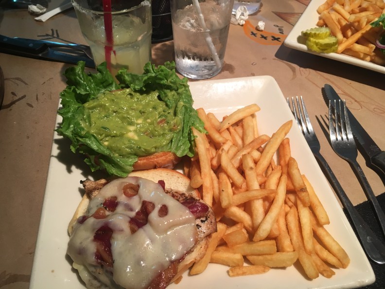 Lunch occurred at a place called Mollys, I ordered a delicious chicken sandwich loaded with guacamole.
