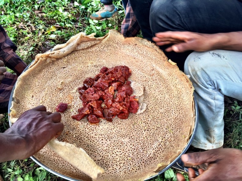 A cultural difference here in Ethiopia for sure. Straight from cow to mouth with no cooking in between. Nom Nom…No?