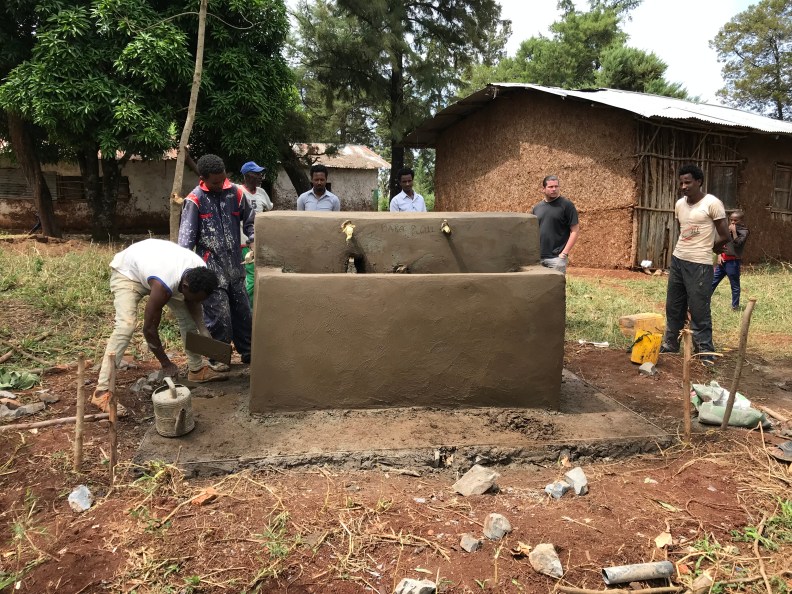 Boom shakalaka! Done. The last piece to remain is making it look pretty and giving it some POP (Paint it). The process of the handwashing station was long and obnoxious, but I am glad it was accomplished. It started with finding the right contractor from the neighboring town that could do a good job and wouldn’t charge me out the butt. Even though I have been here (at that time) for over a year, it was beyond frustrating to still get charged the “Forengie Price” meaning, they doubled or tripled what things should have cost. We talked to a couple people and then landed on a young dynamic duo. They initially tried to over charge me and I was fed up with all the BS. Luckily, I was with the head director of the school so I felt more comfortable and well… I let the two have it. I explained (yelled) that just because I am white doesn’t mean that I have money, that I came here as a volunteer to learn from Ethiopians, to share my life, and help increase the health of people here in Chime. That I am NOT getting paid to do this. Then I pulled the classic bargaining move of walking away and telling them we will find someone else. The two came to their senses and we were able to compromise on a price. The actual construction of the handwashing station did not take too long, the men were pretty on top of it. It was joyful to watch my baby come to life.