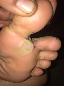 After peeling off my socks once we arrived and being able to have a good look at what was going on, I was shocked at how big it had gotten. Some may want to skip the picture if ya can. 😂