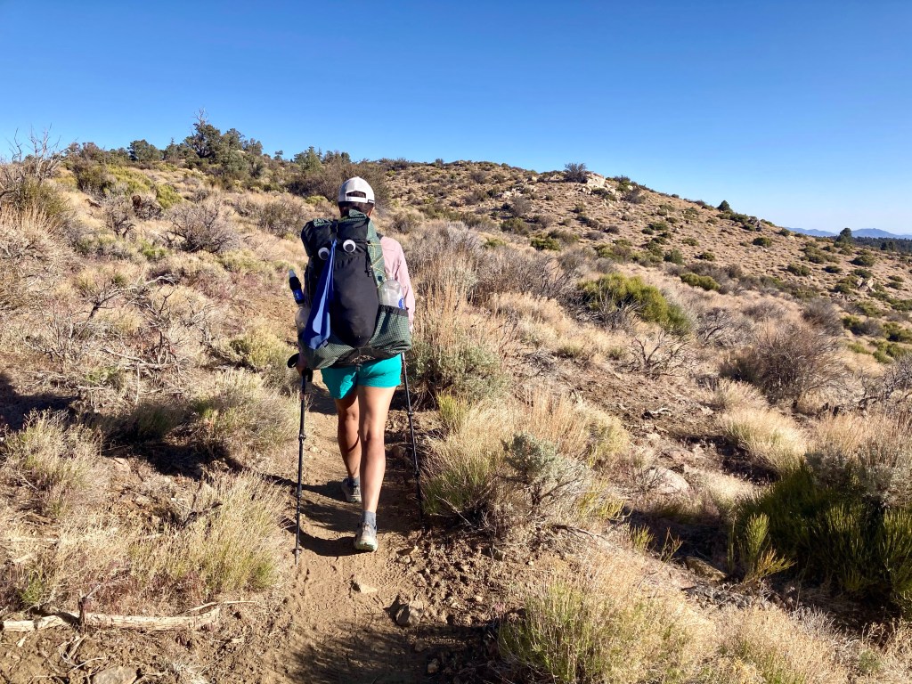 We started out hiking fast on the 3 mile downhill and that turned into a kind of “grandma shuffle” and then we started running. 😂 Our packs were light because we had little food and little water since we were heading into town in 10 miles so it just became a run down to warm up.