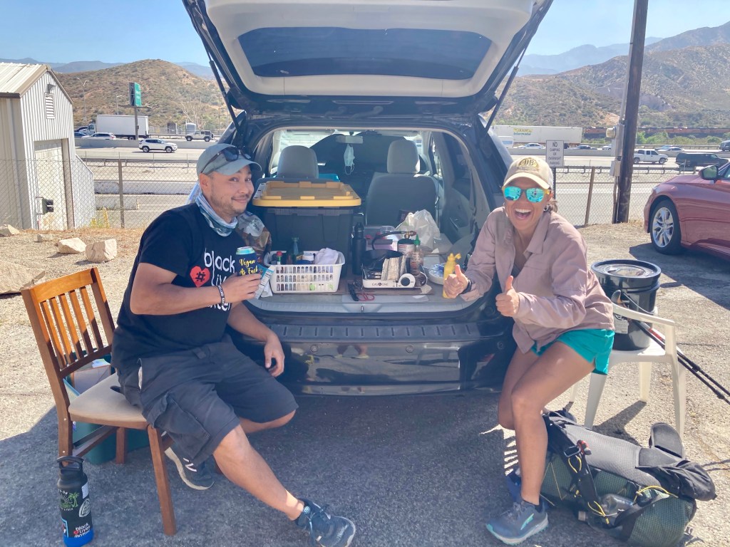 As we were walking down the road we saw a guy sitting in his suv and he shouted out to us that he is doing trail magic and offered us food and a drink.