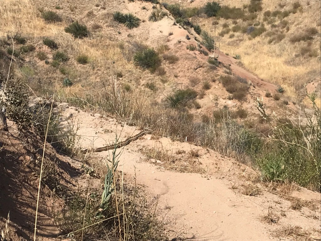 Planner and I quickly went up this small hill to avoid being near it and then as I was coming down the steep side, slipped and hit my hip hard as my pack was also full of water. Thankfully I just got scratched up and the snake didn’t come after me so I was able to laugh it off.