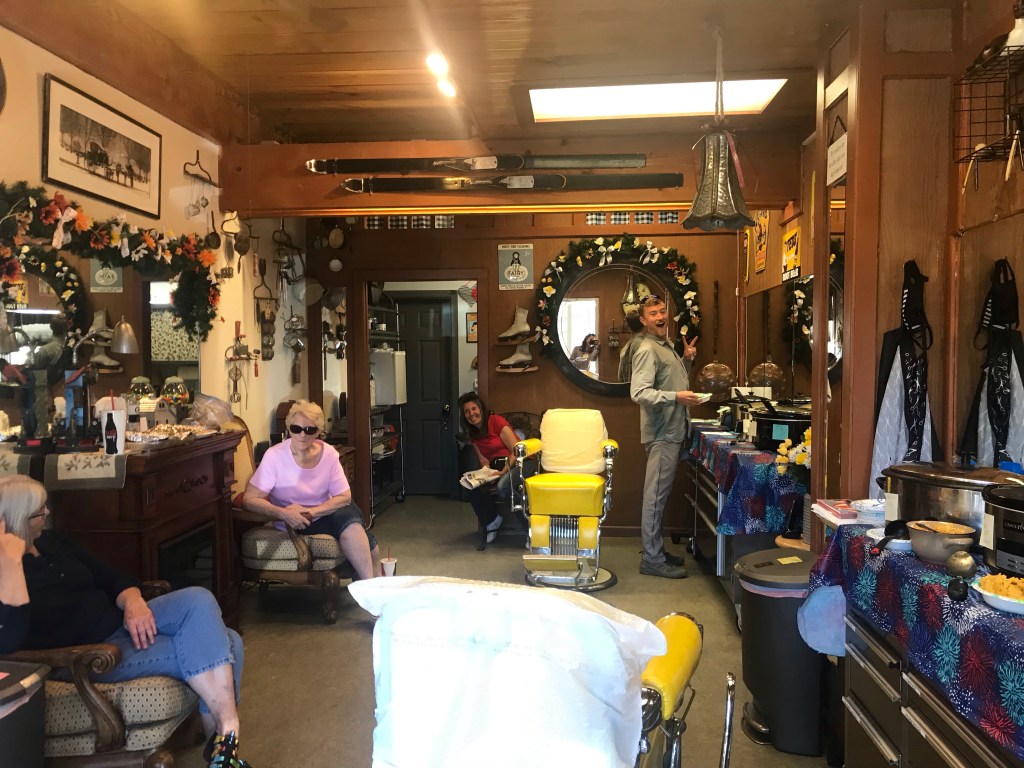 Supposedly this hair salon and the ladies who run it (I think) set up a potluck every year for hikers and all they ask is for us to vote on which is the best. The winner then gets 50 bucks between them.