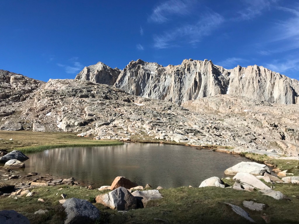 A couple miles before we got to camp, the trail led us up over a bald where we could see Whitney in the distance and Forester which we climb tomorrow ahead of us. We also were accompanied by a ton or marmots who seem to not give a crap we were walking through.