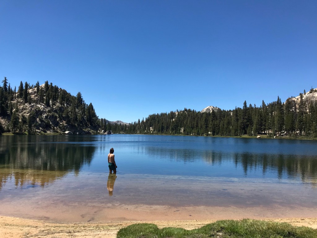 I became even more excited when I arrived. It was the perfect lake and made me think some of Maine on the AT. With its sandy beach and clear blue water. My favorite part was that the sand went all the way into the lake and gradually got deeper. Most the times when we get to the lakes they are rocky on the bottom and it’s hard to walk in.