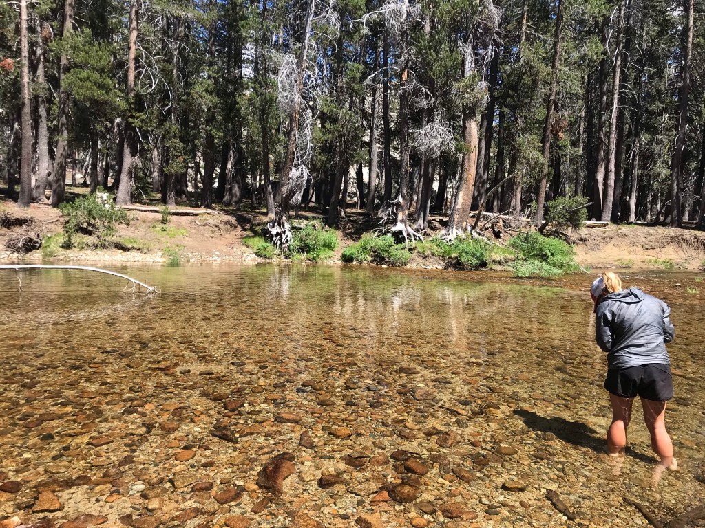 We crossed multiple lakes today however we crossed our first one that was actually swimable. Joe, Goldilocks, Chopper, and Lightning joined us for our lunch break and we swam around.