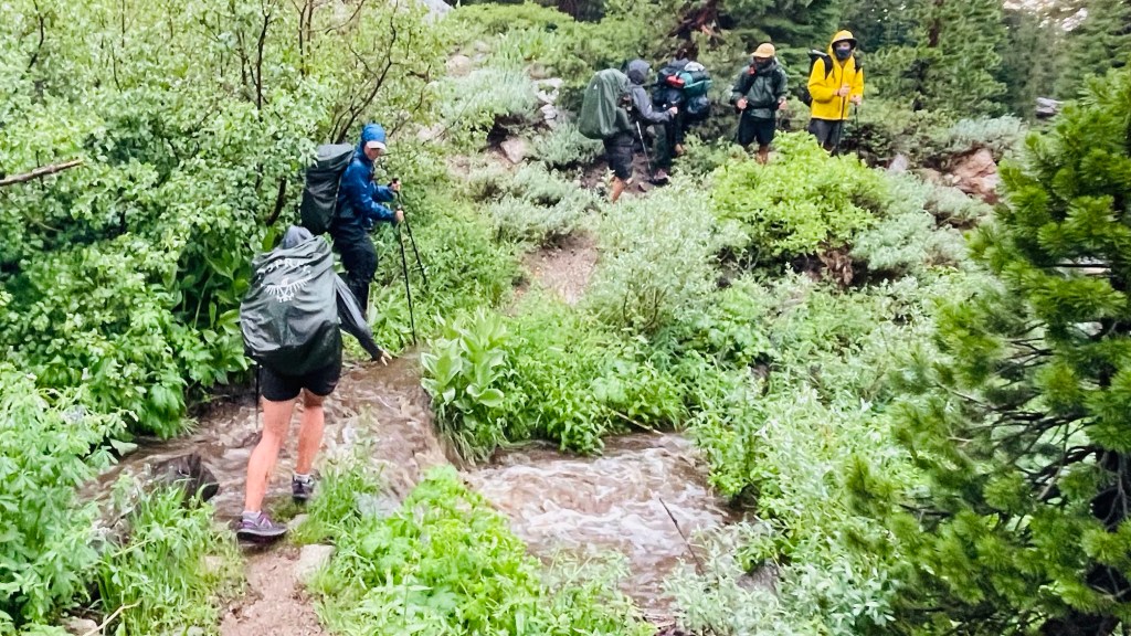 We caught back up to Joe, Goldilocks, and Lightning and all hiked together in a line. Going through the rain and hail and bigger water crossings one merry step at a time.