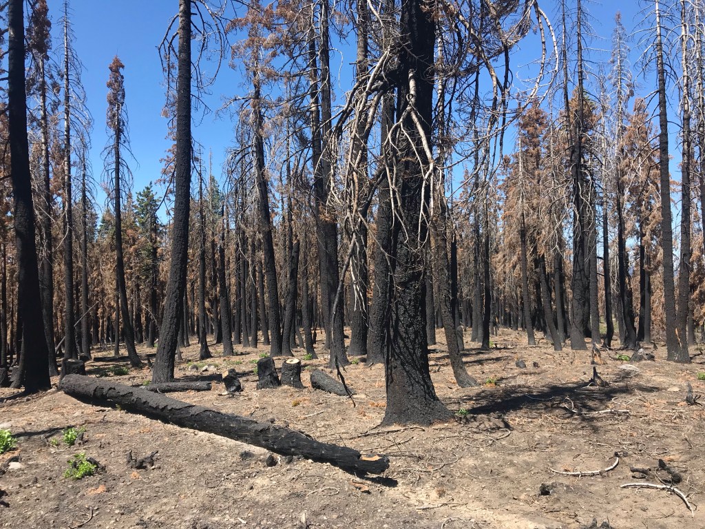 We graciously thanked her and hiked on into an old wildfire zone.