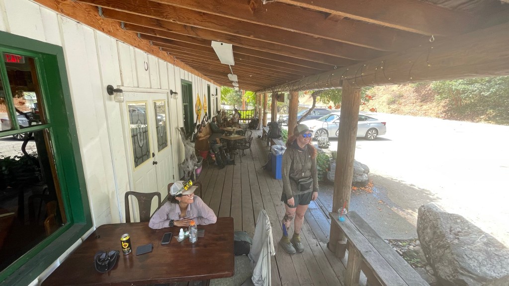 The restaurant didn’t open till 2 and it was incredibly humorous as each hiker showed up they would stand out front in the misters to try and cool off.