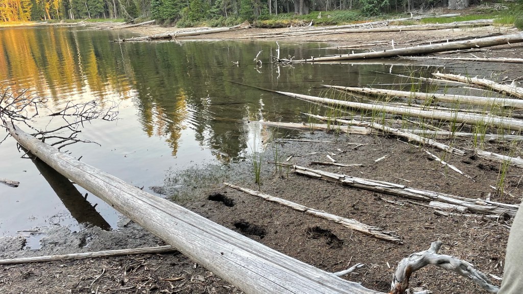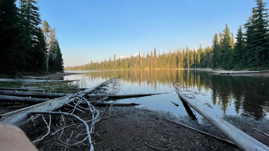 We hiked for a few miles and saw a lake off to our right. I decided I wanted to go step in and wash my legs off before we got to camp.