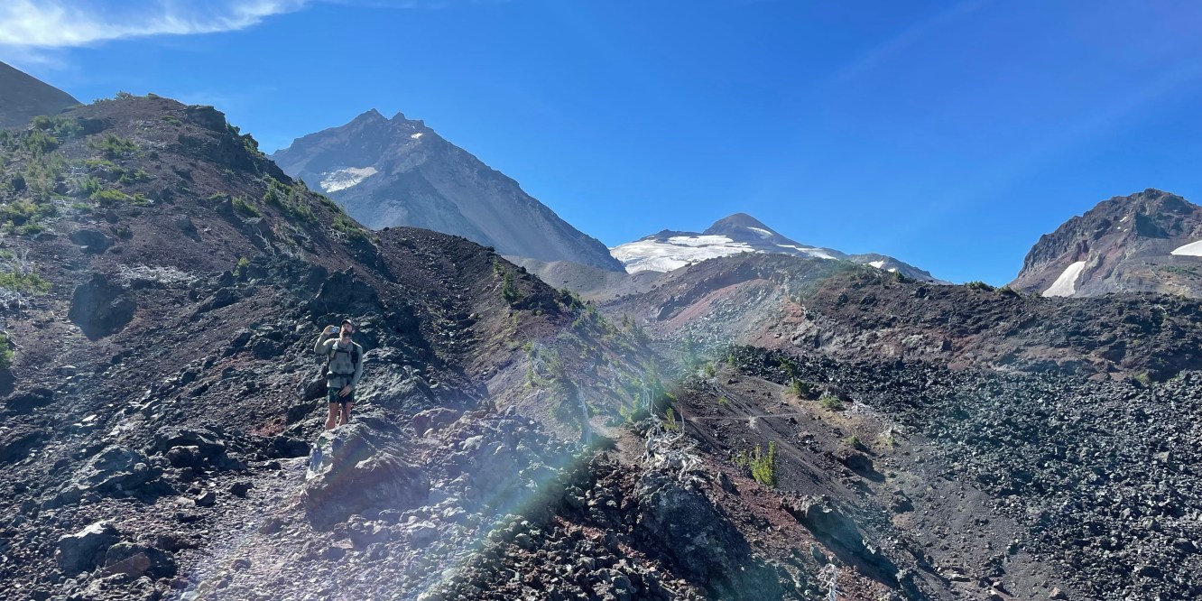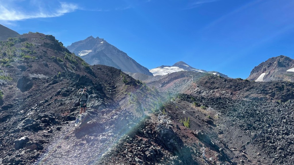 We were having incredible views of the Sister mountains and then went through an obsidian rock area. The sun was bouncing off the shiny rocks, it almost felt like we were on a different planet.