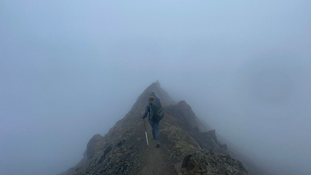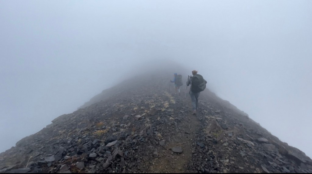 I felt like I was in a movie hiking along this narrow ridge line. It may have not been ideal with no views but it was quite a unique experience.