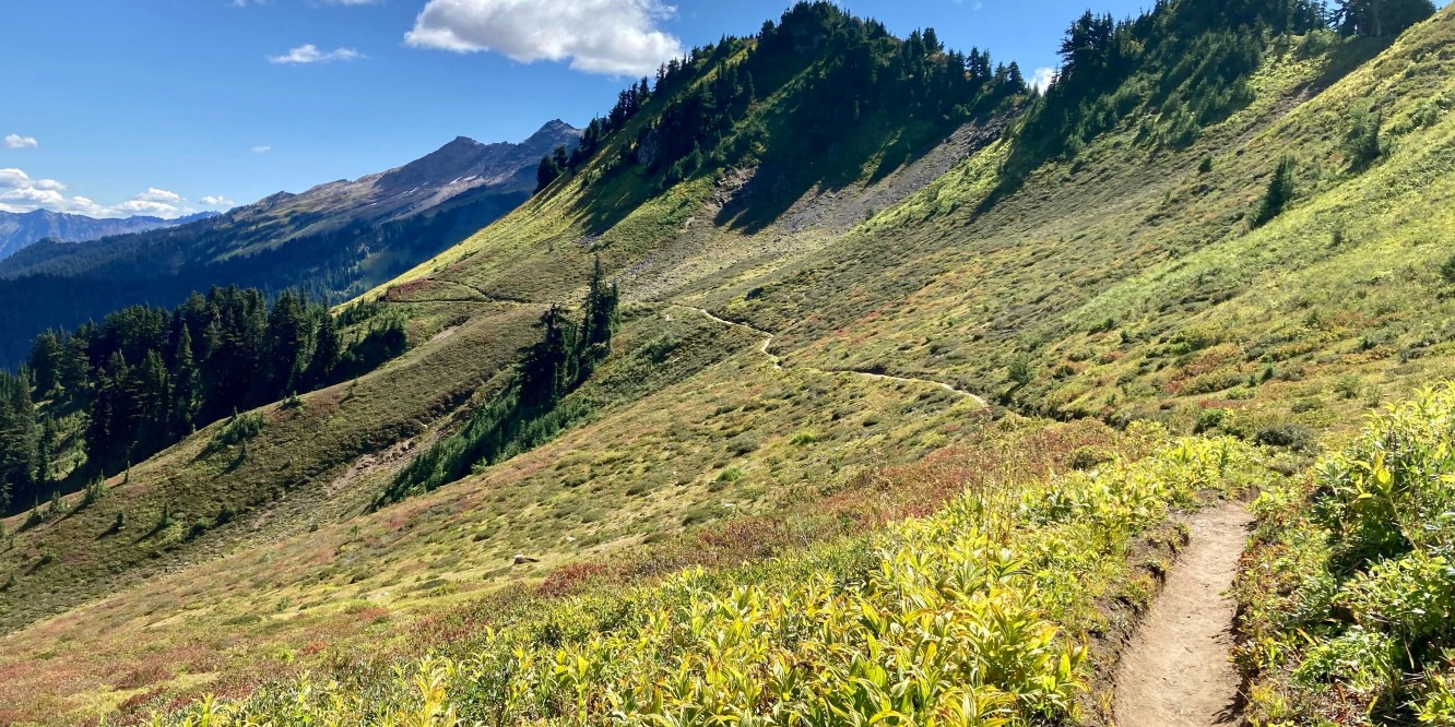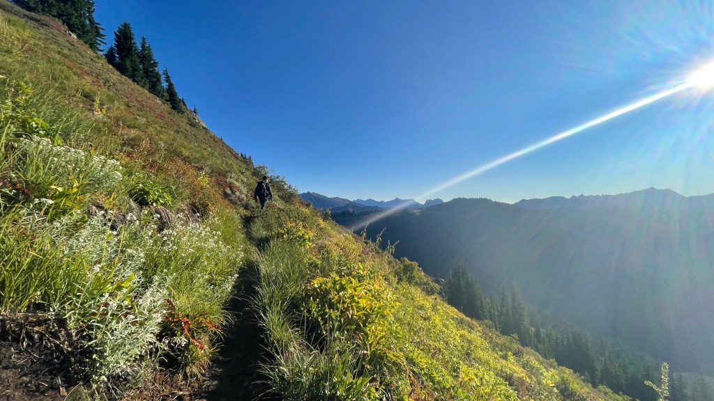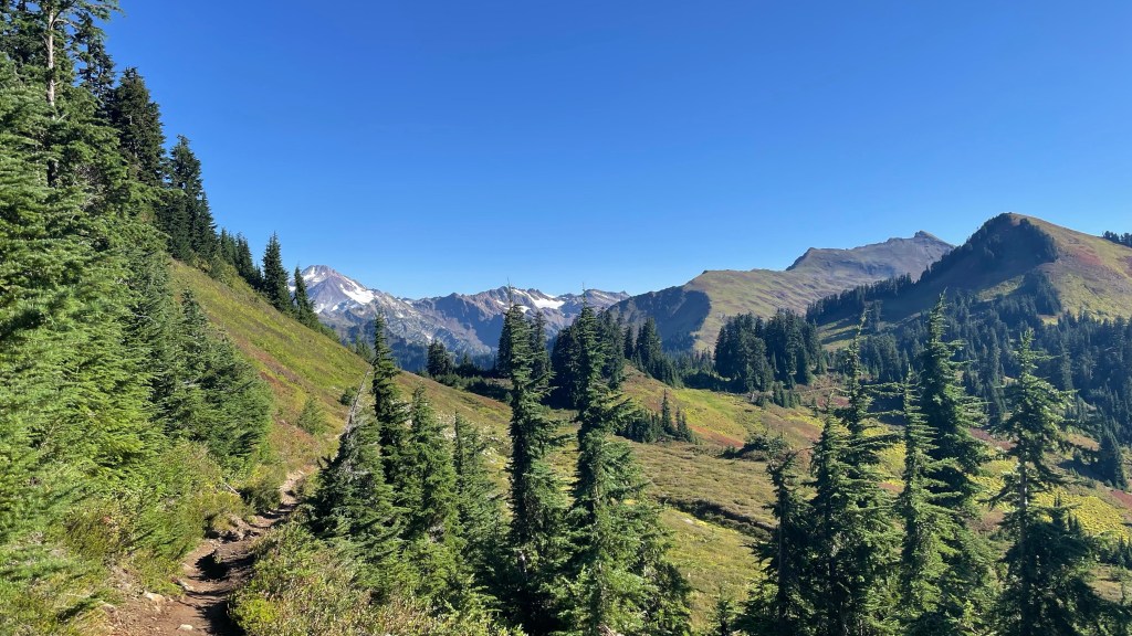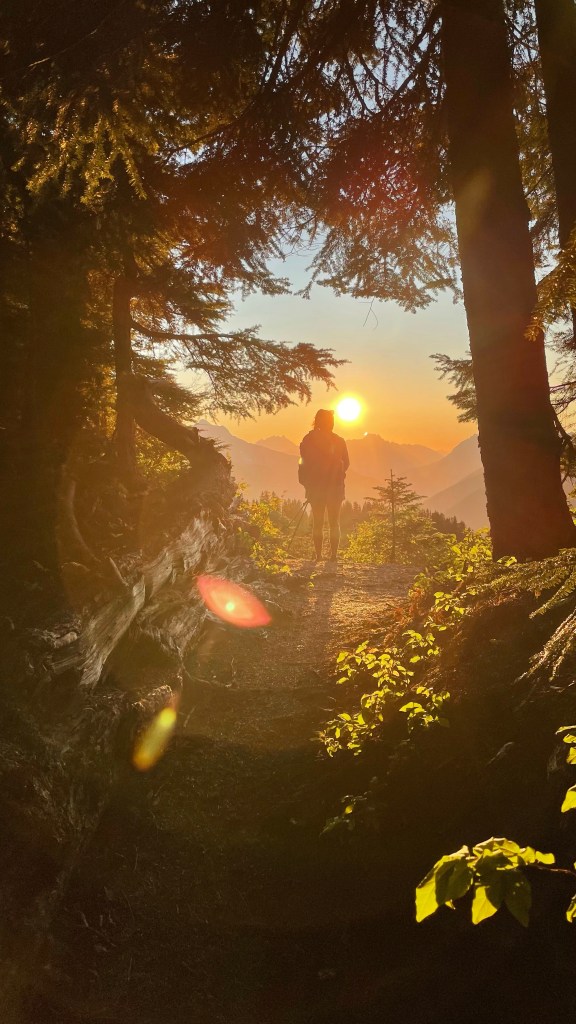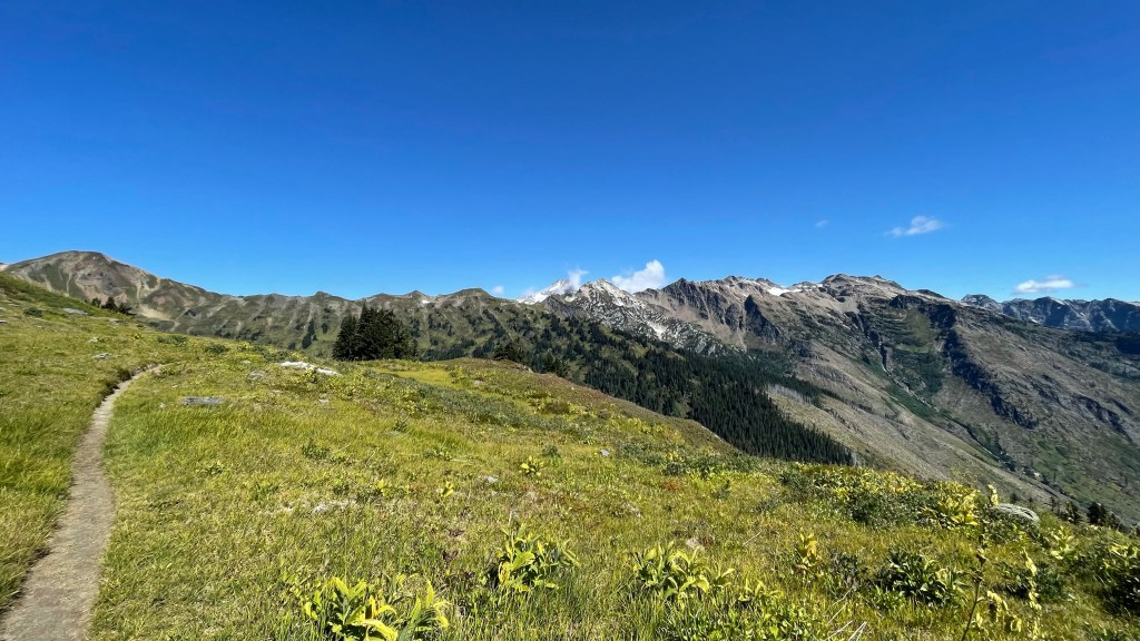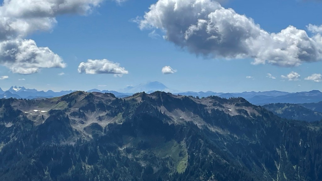 At one point Journey stopped ahead of me looking at a view and as I approached him, I stopped, scanned the horizon, and yelled “Holy shit!” Rainier was in the background loud and proud. Just bam! Here I am.