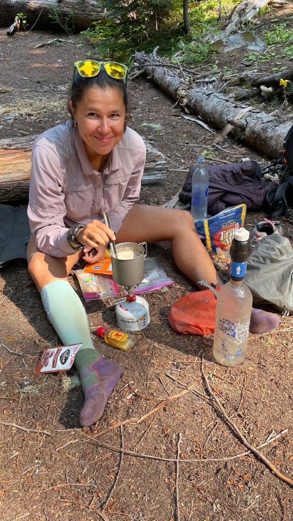 Around noon we stopped for a quick lunch break and realized how little food we had left in our packs afterwards. I had one Knorr pasta side and a bar left. We, without a doubt, had to make the shuttle. We finished off our lunch break with our favorite hot drink; cocoa and fireball. It was just what we needed!