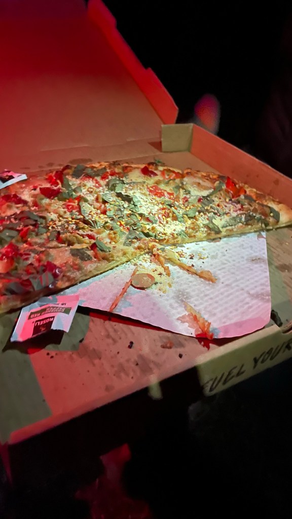 We hiked a few minutes down the road to a camp spot and while we were eating second dinner a man comes over with a pizza box and asked us if we wanted it! He told us that he was unable to eat it and didn’t want it to go to waste.