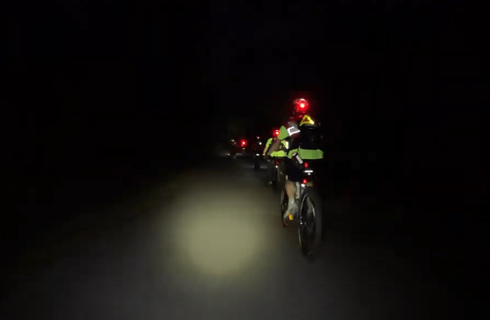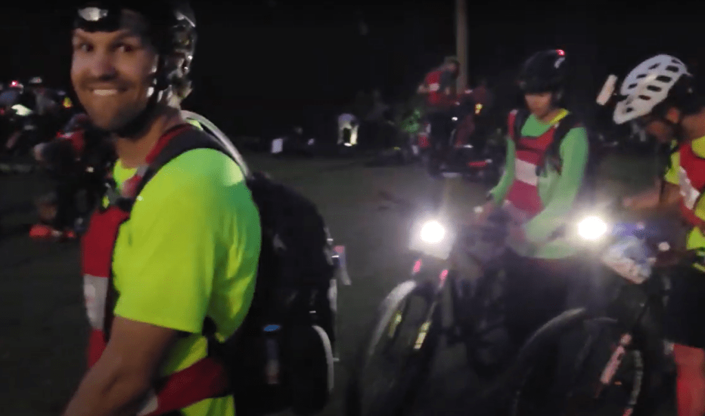 We pulled out our canoe and searched for our bikes. The race had all the bikes, water, and some snacks laid out. It was not an official transition station though, so we tried to be quick. I had gotten a blister on my hand so I made sure to take care of that, then we made sure our bikes had all the required lights on them and then headed out into the night.