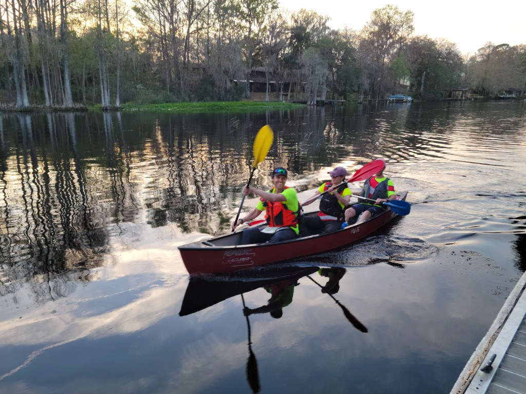 Eventually, after smacking each others paddles a few time, we all got into a groove and were cruising down the Withlacoochee River admiring all the houses, docks, and boats we saw. I did feel a little eerie knowing that there were alligators here, I wasn’t ready to see any.