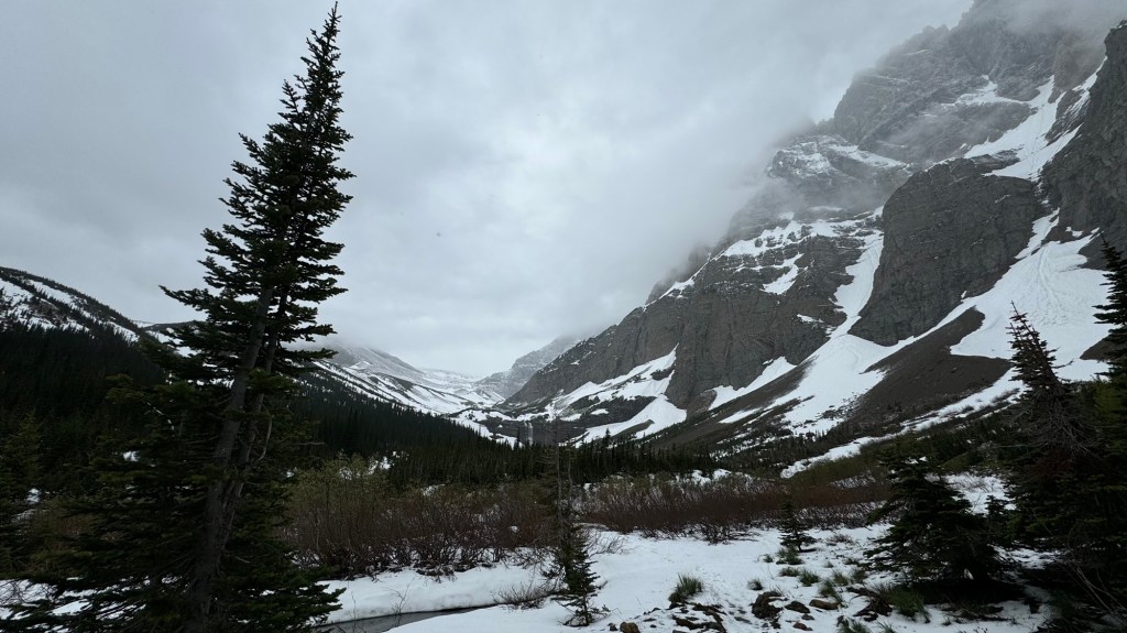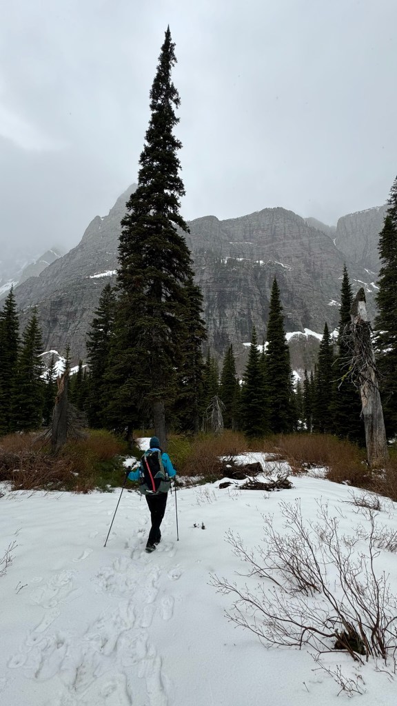 The big dilemma for the day was what time we should start walking to try and get over Piegan Pass before the snow/rain became thick.