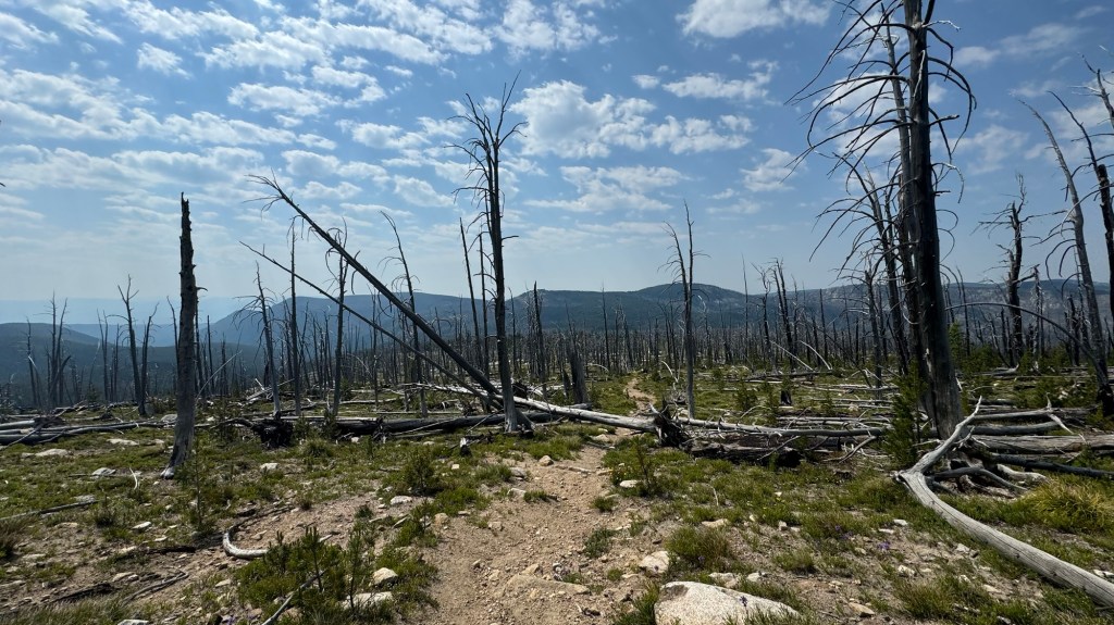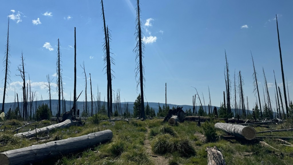 Journey listened to music during the burn stretch and I let my mind wander. We didn’t let out a single “Heyo” all day. We only saw bear scat twice and it looked pretty old. Plus we have been told by many locals that grizzlies aren’t really in this area until we get closer to Yellowstone.