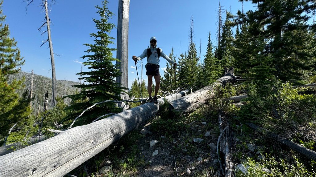 The last quarter of the trail today was on “easier” terrain but had massive blow downs we had to go over. Usually this is no big deal but we were already crawling along and this made us go even slower.