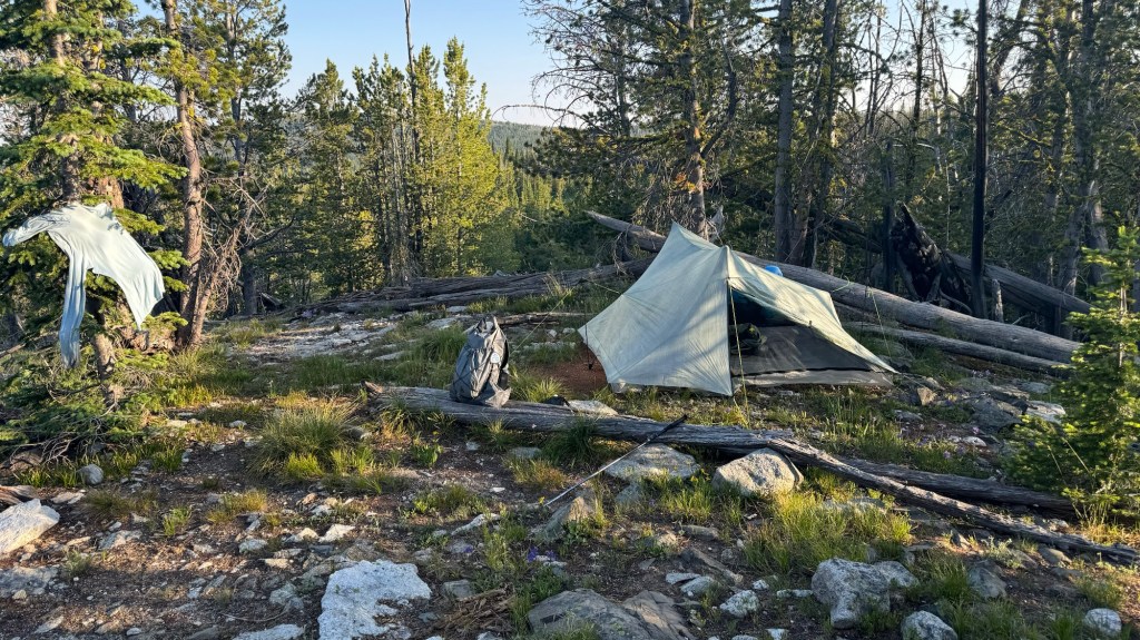 Finding a camp spot was a bit tricky with rocky ground but we made it work up on a hill and should have a beautiful sunrise!
