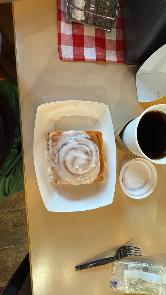 Today started off with some breakfast at the Old West Candy Shop. It is multiple shops combined into one, I was also surprised to be heading to a candy shop. I ordered a breakfast sandwich, potatoes, and of course a cinnamon roll. Cinnamon rolls are always delicious but Augusta is still number one.
