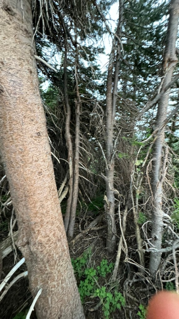 Aster and Whatever had caught up by this point and we all decided that we should get in this batch of trees and sit out the incoming storm.We all found our way through and hunkered down.