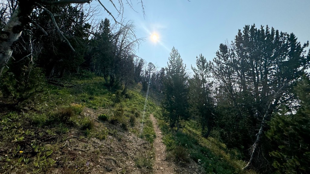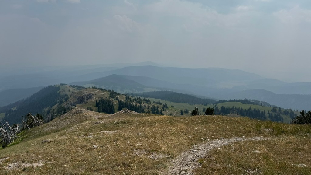 We had under 10 more miles to get to the end of our hike for today and the trail led us out on some open ridges and even though it was smoky, it was beautiful.