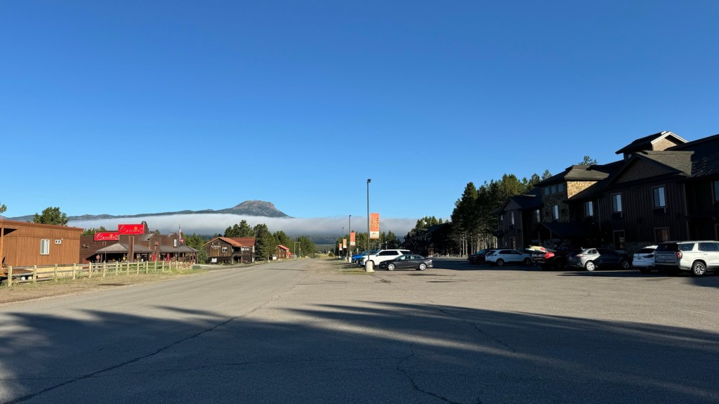 Around 3 PM we hit the Yellowstone National Park boundary and were a bit let down when it was only this teeny tiny sign up in the trees. We figured for a national park that it would be a bit larger but I guess they keep it mellow out here.