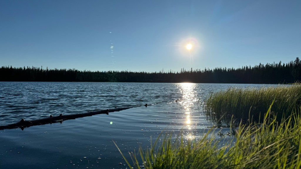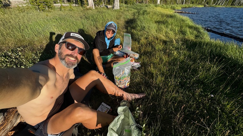 We made it to camp, set up our tent, and went out by the lake to wash off and eat dinner. This lake also has leeches, gross! 🤢