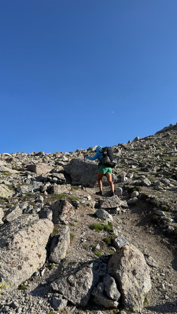 We moved quickly and made it down to the lake fast. Journey and I decided we would stop here for the night instead of continuing over the next pass as originally planned. We didn’t see Captain so we assumed he went on there.
