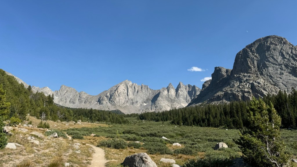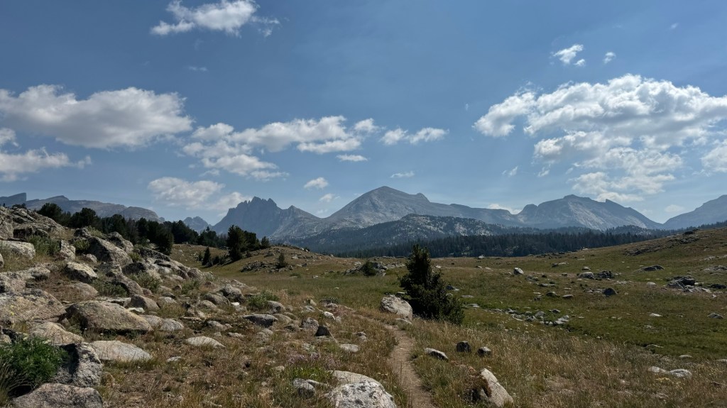 Around lunch time we started to get views of more big mountains in the wind river range. We were headed right for them as we planned to do the Cirque of the Towers alternate. This alternate had more elevation and passes to cross through but we were told it’s beautiful and well worth it.